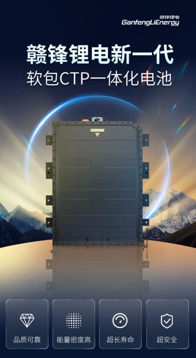 12月19日,在重庆GAF2024新能源汽车智造峰会上,赣锋锂业子公司赣锋锂电正式发布“新一代软包CTP一体化电池”,电池融合续航、安全、高效、宽温域等多项技术创新,重新定义动力电池领域多项标准。